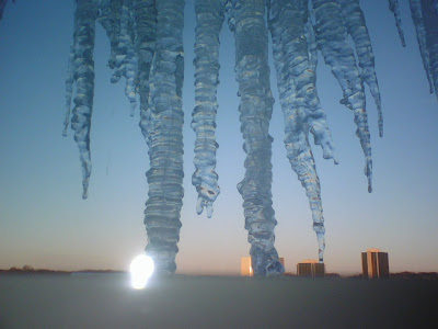 We have some huge icicles outside our bedroom window! I don’t think I’ve ever seen icicles this huge outside our house before! Those things are big enough to crash down and break something! Here’s a few pics: